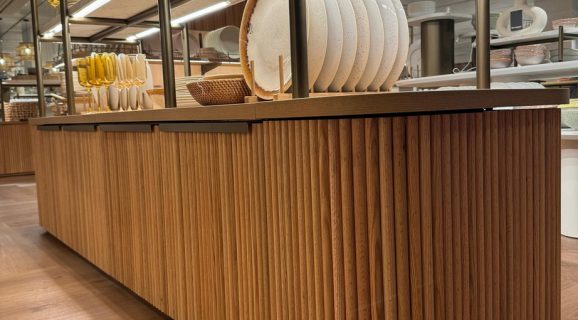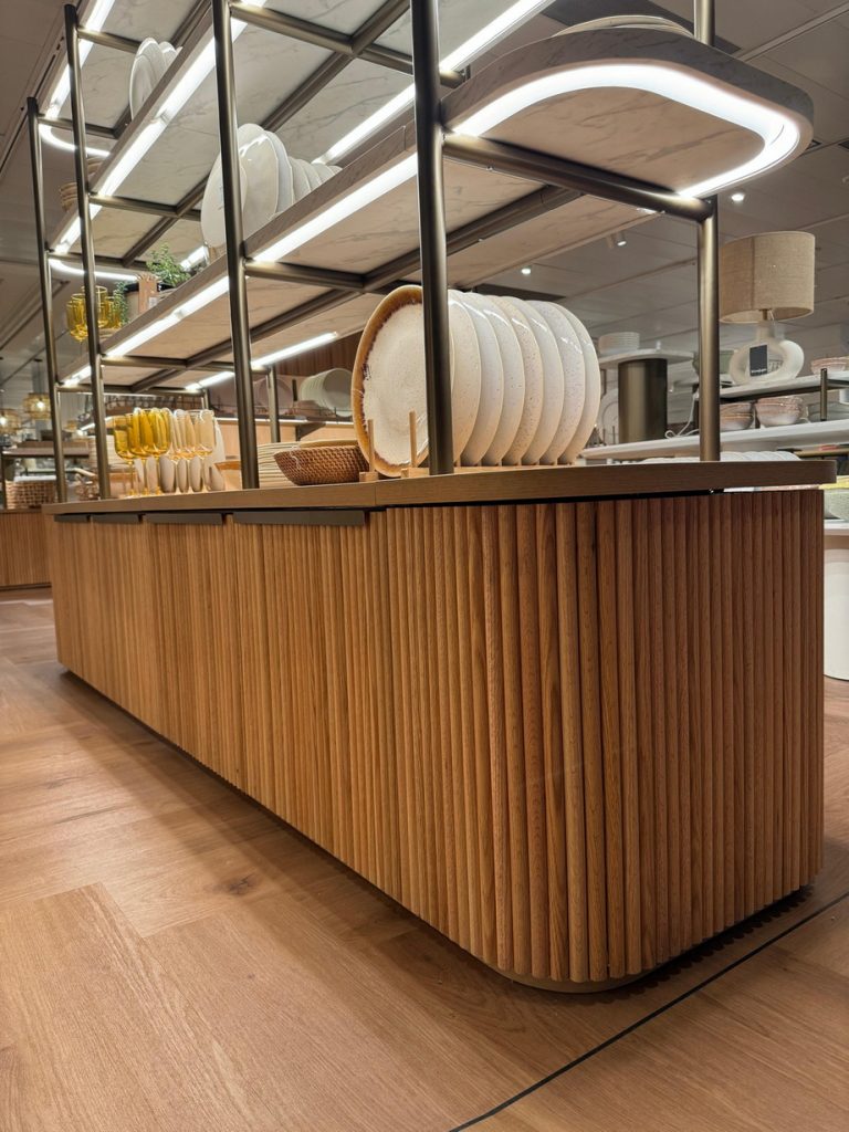 Saitra, reconocida por sus diseños de cocinas innovadores y de alta calidad, ha elegido Flexwood para revestir las islas de sus cocinas, demostrando así la versatilidad y el atractivo estético de nuestros paneles de madera natural.