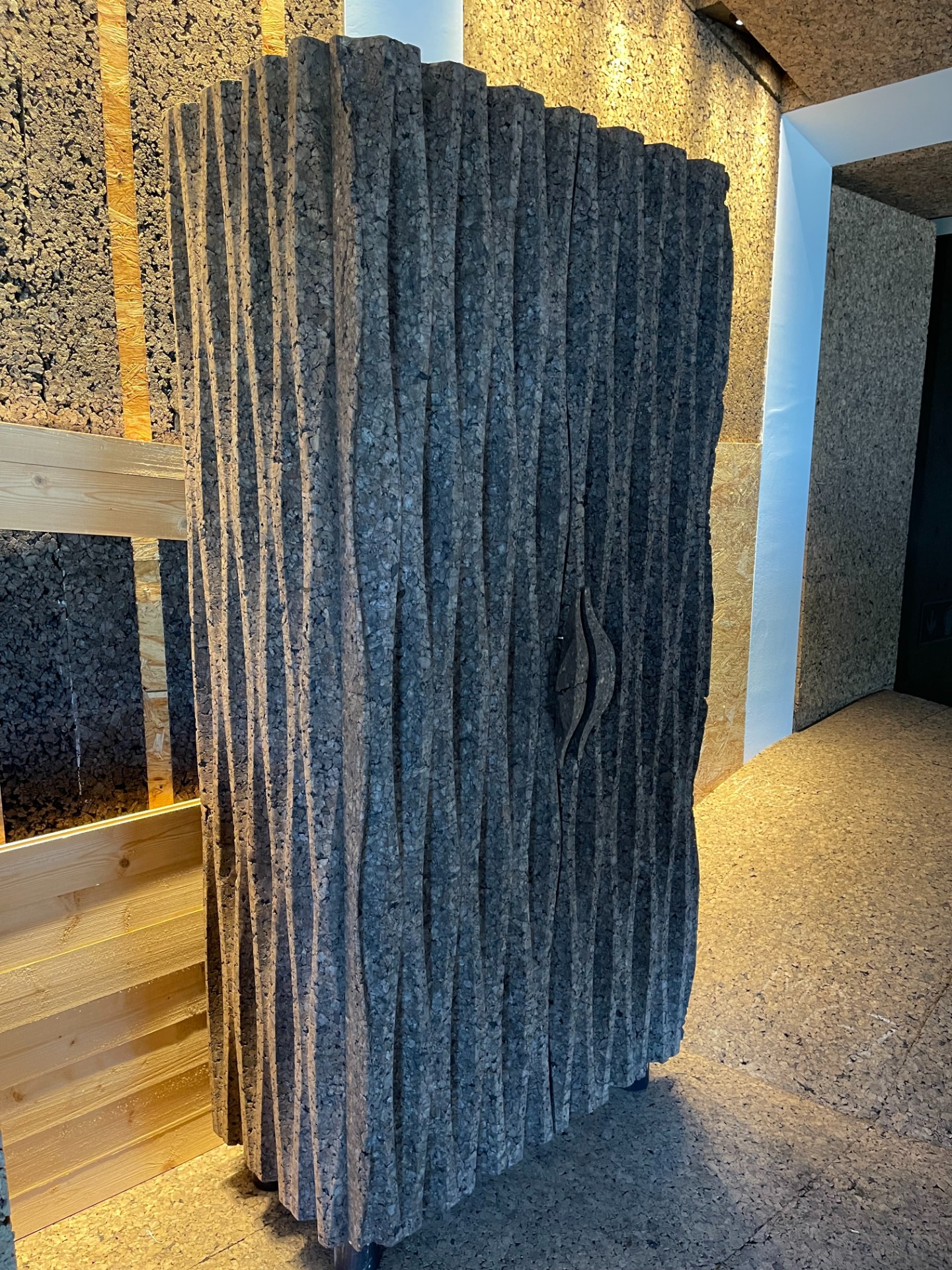 Tiene unas características excepcionales, es un gran aislante térmico y acústico que se puede utilizar para revestimientos tanto de paredes como mobiliario. Genera un gran valor y exclusividad en productos únicos de interiorismo.